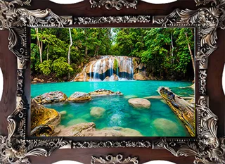 تابلوفرش ماشینی طرح آبشار جنگلی کد 30010 (3 سایز)