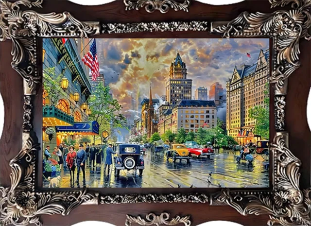 تابلوفرش ماشینی طرح خیابان نیویورک قدیم کد 30088 (3 سایز)