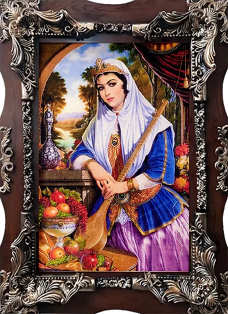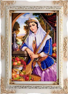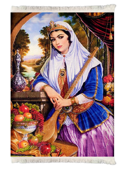 تابلوفرش ماشینی طرح دختر ایرانی سه تار زن کد 30006 (3 سایز)