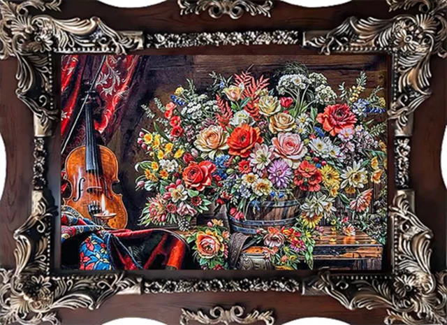 تابلوفرش ماشینی طرح سبد گل کد 30091 (3 سایز)
