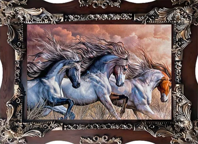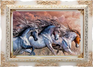 تابلوفرش ماشینی طرح سه اسب دونده کد 30076 (3 سایز)