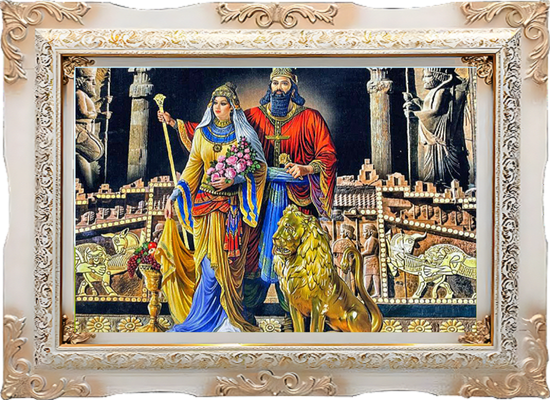 تابلوفرش ماشینی طرح کوروش و ماندانا کد 30101 (3 سایز)