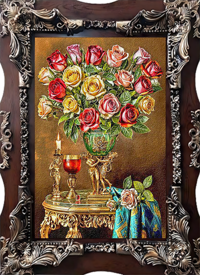 تابلوفرش ماشینی طرح گلدان گل کد 30093 (3 سایز)