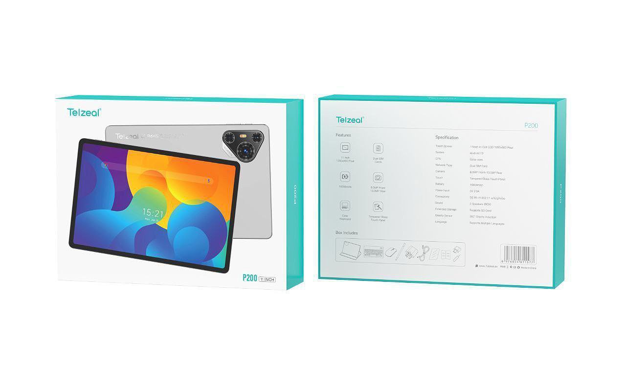 Telzeal P200 از پورت Type-C، بلوتوث 5.0، وایفای دو بانده و اسلات سیمکارت 4G پشتیبانی میکند. علاوهبراین، با اتصال به کیبورد مغناطیسی و قلم لمسی، به یک لپتاپ کامل تبدیل میشود.