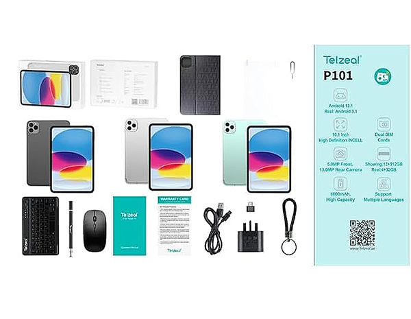 تبلت Telzeal P101 | رم 8GB | حافظه 512GB | نمایشگر 10.1 اینچ | دو سیمکارت | WiFi 5G | اندروید 13 | باتری 8000mAh (اورجینال)