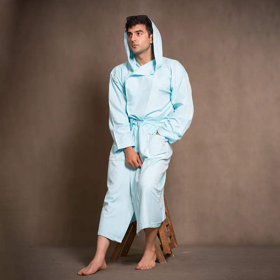 حوله تنپوش کلاهدار ساده آبی (سایزبندی)