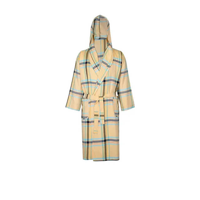 حوله تنپوش کلاهدار چهارخانه نوین زرد (سایزبندی)