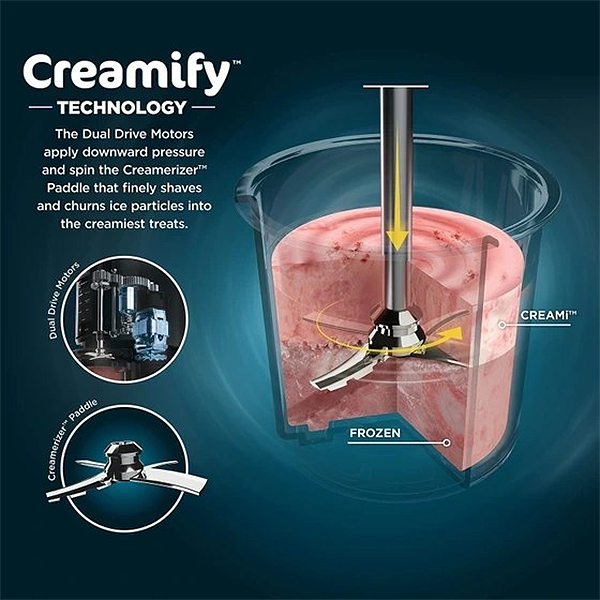 دستگاه بستنی ساز نینجا مدل 301 پایه های جامد یخ زده را با لمس یک دکمه به بستنی، شربت، میلک شیک و موارد دیگر تبدیل می کند. فناوری Ninja’s Creamify به CRAMi این امکان را میدهد تا یک بلوک منجمد یکنواخت را در عرض چند دقیقه به بافتی فوقالعاده صاف و کرمی تبدیل کند.