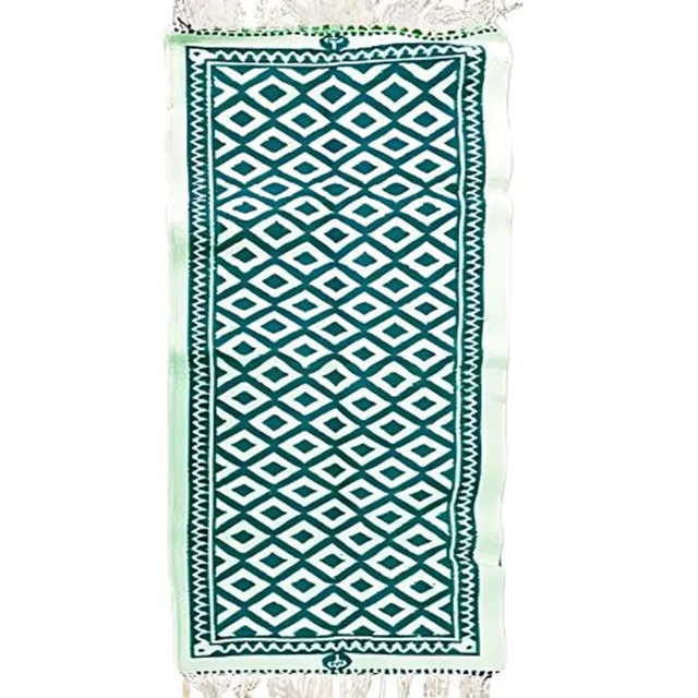 زیلو دستباف سنتی یزد طرح لوزی زمینه سبز دورو