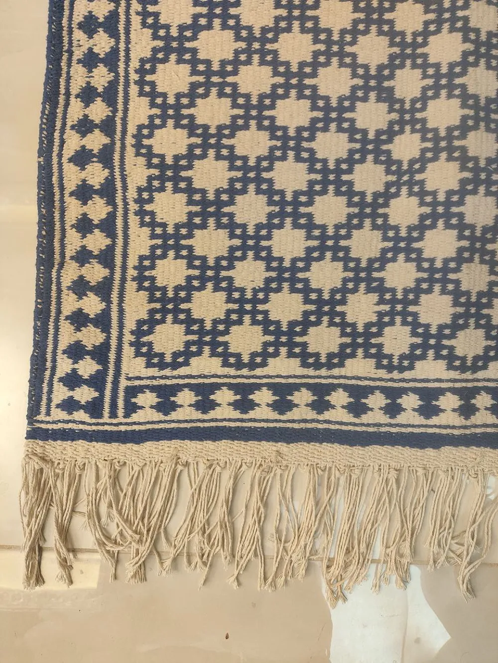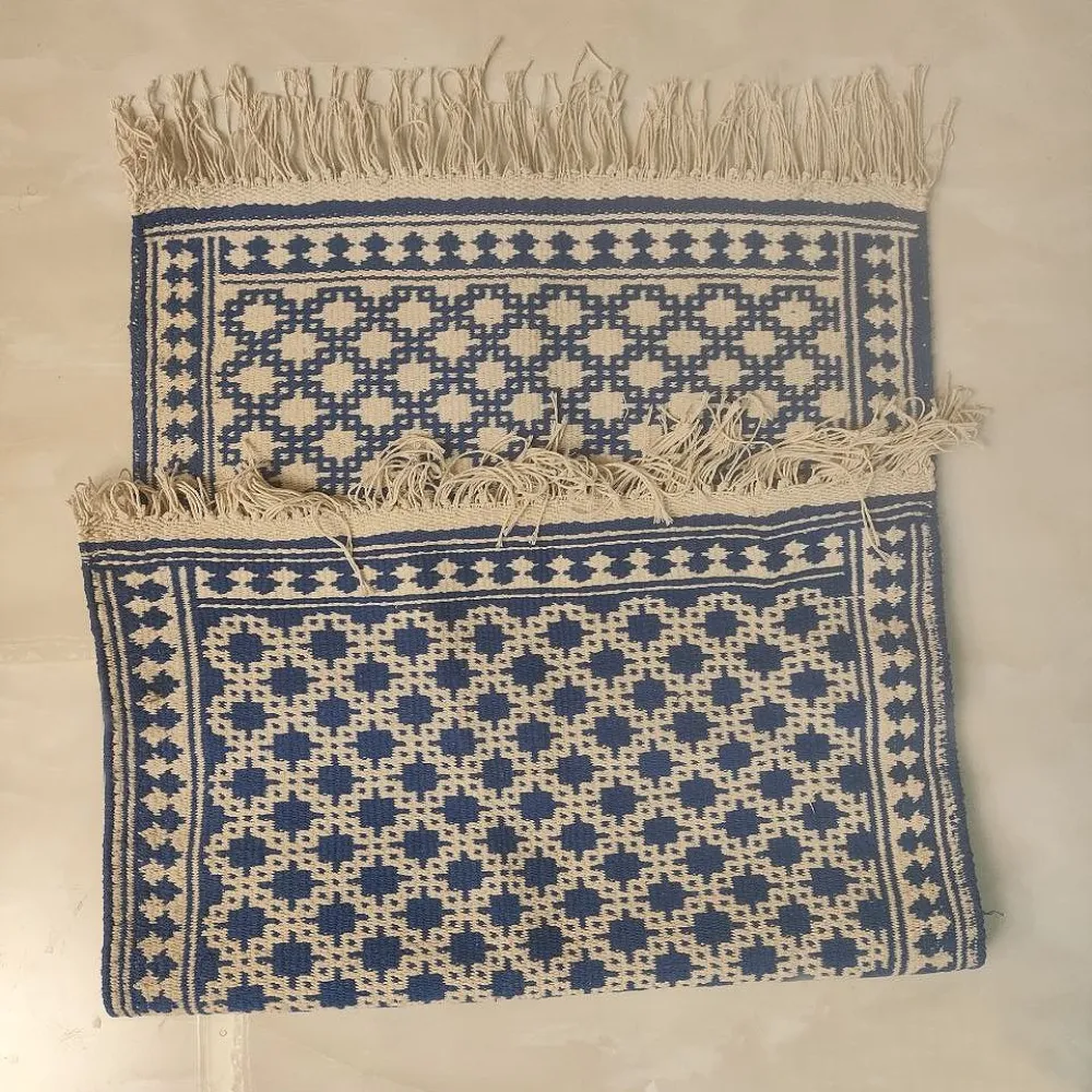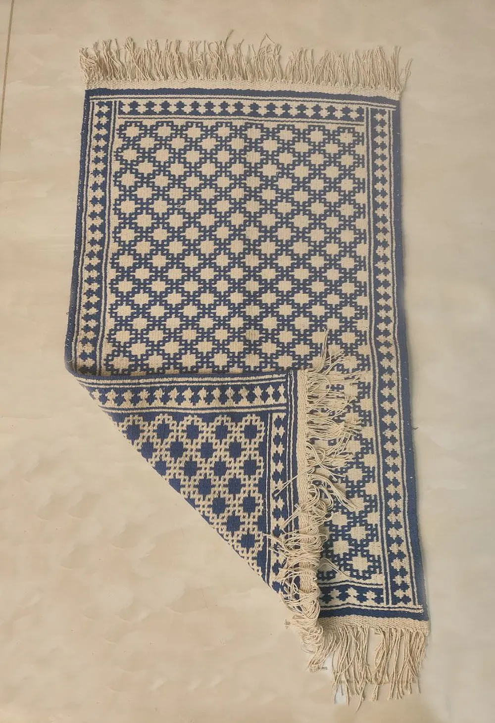 زیلو دستباف سنتی یزد طرح مداخل رنگ آبی-سفید (دو رو)