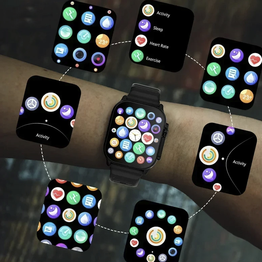 ساعت هوشمند مدل T900 Ultra، محصولی است که طراحی جذاب و قابلیتهای پیشرفتهای را در کنار یکدیگر گرد هم آورده است. این ساعت هوشمند بهعنوان یک همراه مطمئن برای زندگی فعال و پویای امروزی شما، میتواند نیازهای متنوع شما را بهخوبی برطرف کند. از پایش دقیق فعالیتهای ورزشی گرفته تا مدیریت هوشمندانه زمان و حفظ ارتباطات، T900 Ultra هر آنچه برای یک سبک زندگی مدرن ضروری است را در خود گنجانده است.این ساعت هوشمند دارای مجموعهای از ویژگیهای برجسته است که آن را به یک محصول متمایز در بازار تبدیل کرده است. نخستین ویژگی قابلتوجه این ساعت، صفحهنمایش HD با کیفیت بالا و اندازه 1.3 اینچ است. این صفحهنمایش، تصاویر را با وضوح و شفافیت بینظیری به نمایش میگذارد و تجربه کاربری لذتبخشی را برای استفادهکنندگان فراهم میآورد. یکی دیگر از قابلیتهای برجسته T900 Ultra، پایش دقیق فعالیتهای ورزشی و سلامتی است. این ساعت هوشمند مجهز به سنسورهای پیشرفتهای است که میتوانند اطلاعات ارزشمندی مانند ضربان قلب، تعداد گامها، مسافت طیشده و میزان کالری سوزانده شده را بهطور دقیق ثبت و گزارش کنند. این قابلیت بهویژه برای ورزشکاران و افراد فعال، بسیار کاربردی است. علاوه بر این، T900 Ultra به لطف داشتن قابلیت اتصال بلوتوث، امکان همگامسازی با گوشیهای هوشمند را فراهم میآورد. این قابلیت به کاربران اجازه میدهد تا اعلانهای تماسها، پیامها و برنامههای مختلف را مستقیماً روی صفحه ساعت خود مشاهده کنند و در صورت لزوم به آنها پاسخ دهند.