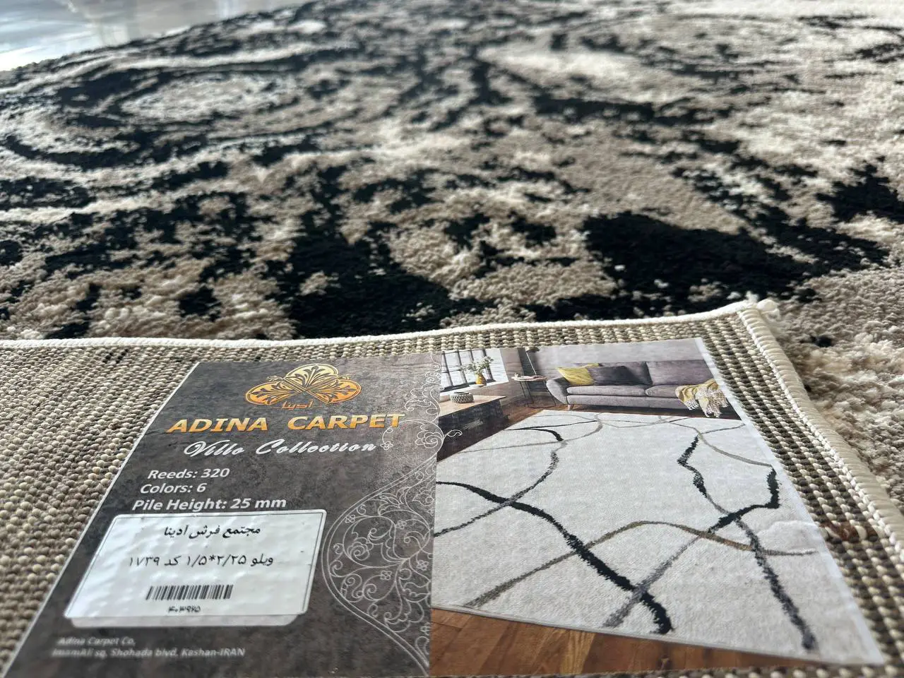 فرش آدینا پرزبلند کلکسیون ویلو کد 1739 زمینه کرم-طوسی (شگی)