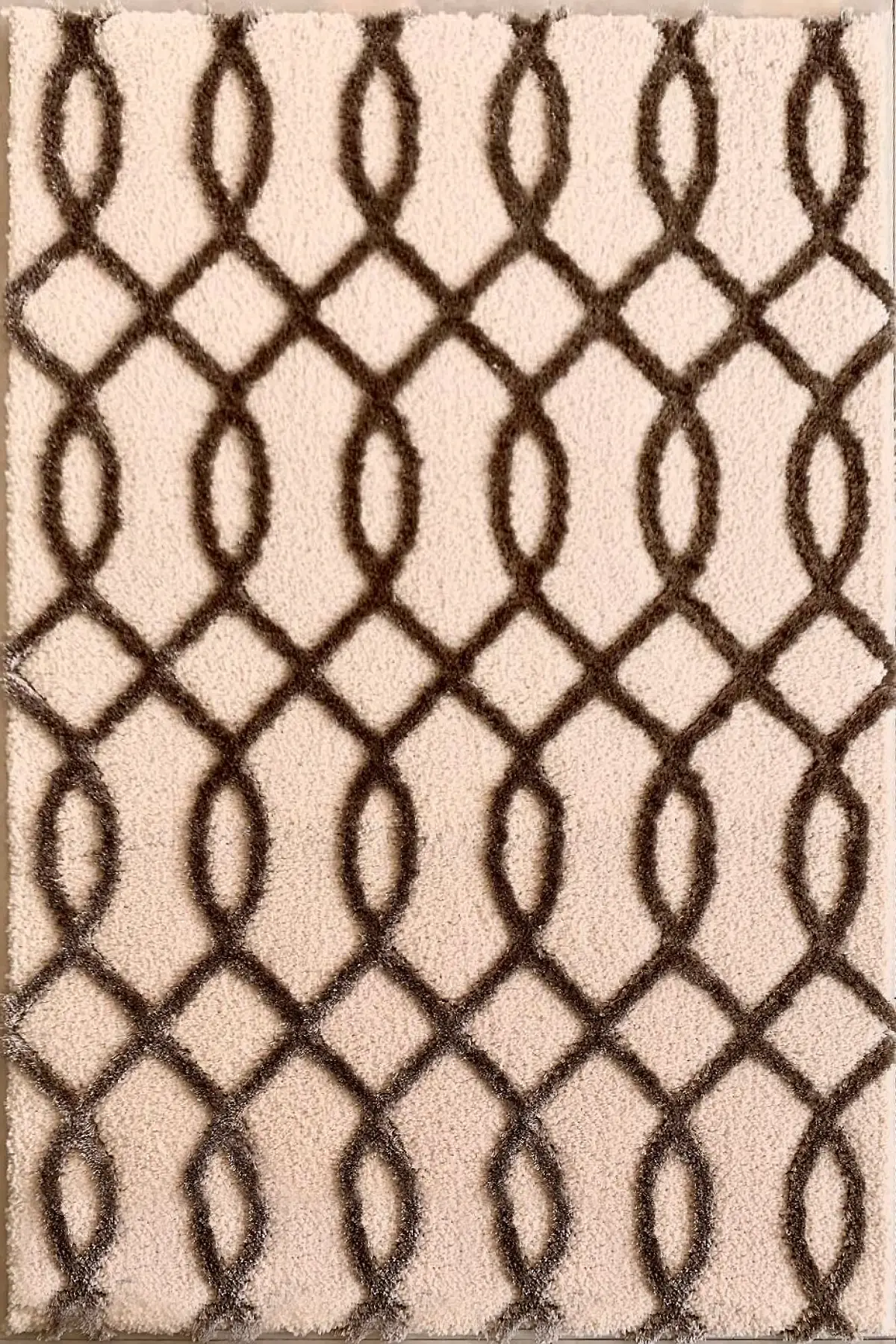 فرش آدینا پرزبلند کلکسیون پارکو کد 13004 زمینه کرم-نسکافه ای (شگی)