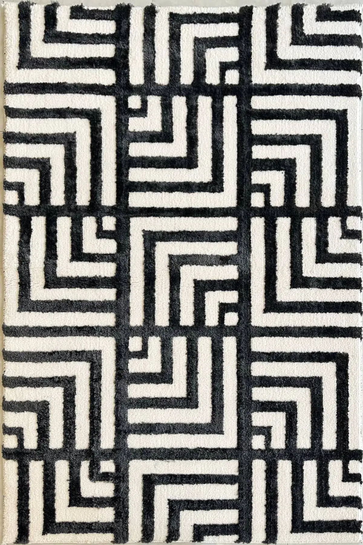 فرش آدینا پرزبلند کلکسیون پارکو کد 150013 زمینه کرم-ذغالی (شگی)