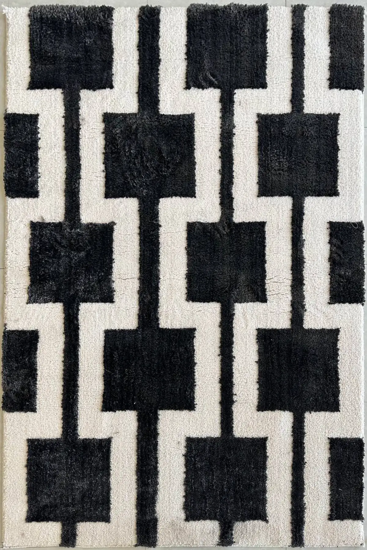 فرش آدینا پرزبلند کلکسیون پارکو کد 15009 زمینه کرم-ذغالی (شگی)