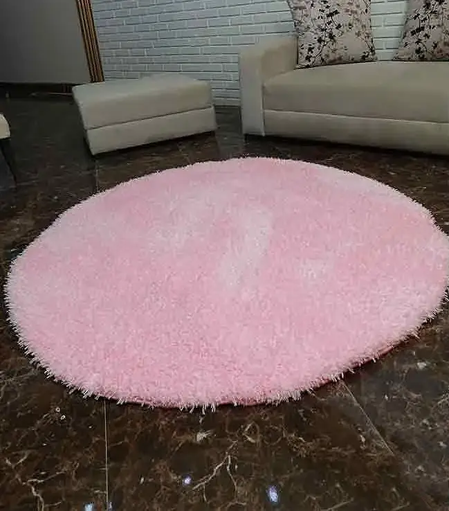 فرش آدینا پرزبلند گرد رنگ صورتی (شگی)