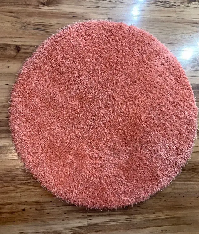 فرش آدینا پرزبلند گرد رنگ گلبهی (شگی)