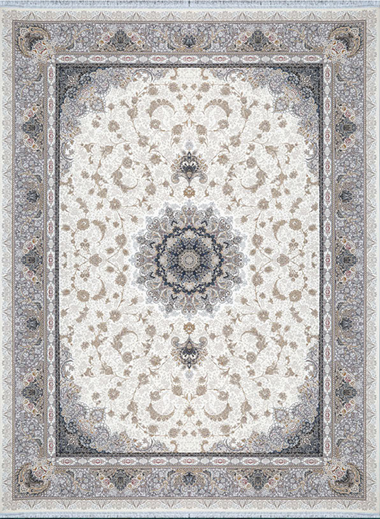 فرش آراد 1500 شانه طرح شاه نشین زمینه کرم (برجسته)