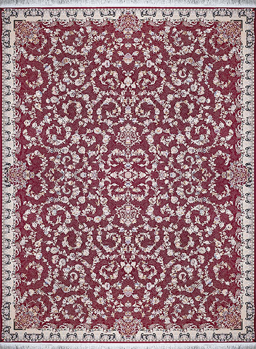 فرش آراد 1500 شانه طرح هرمان زمینه یاقوتی (برجسته)