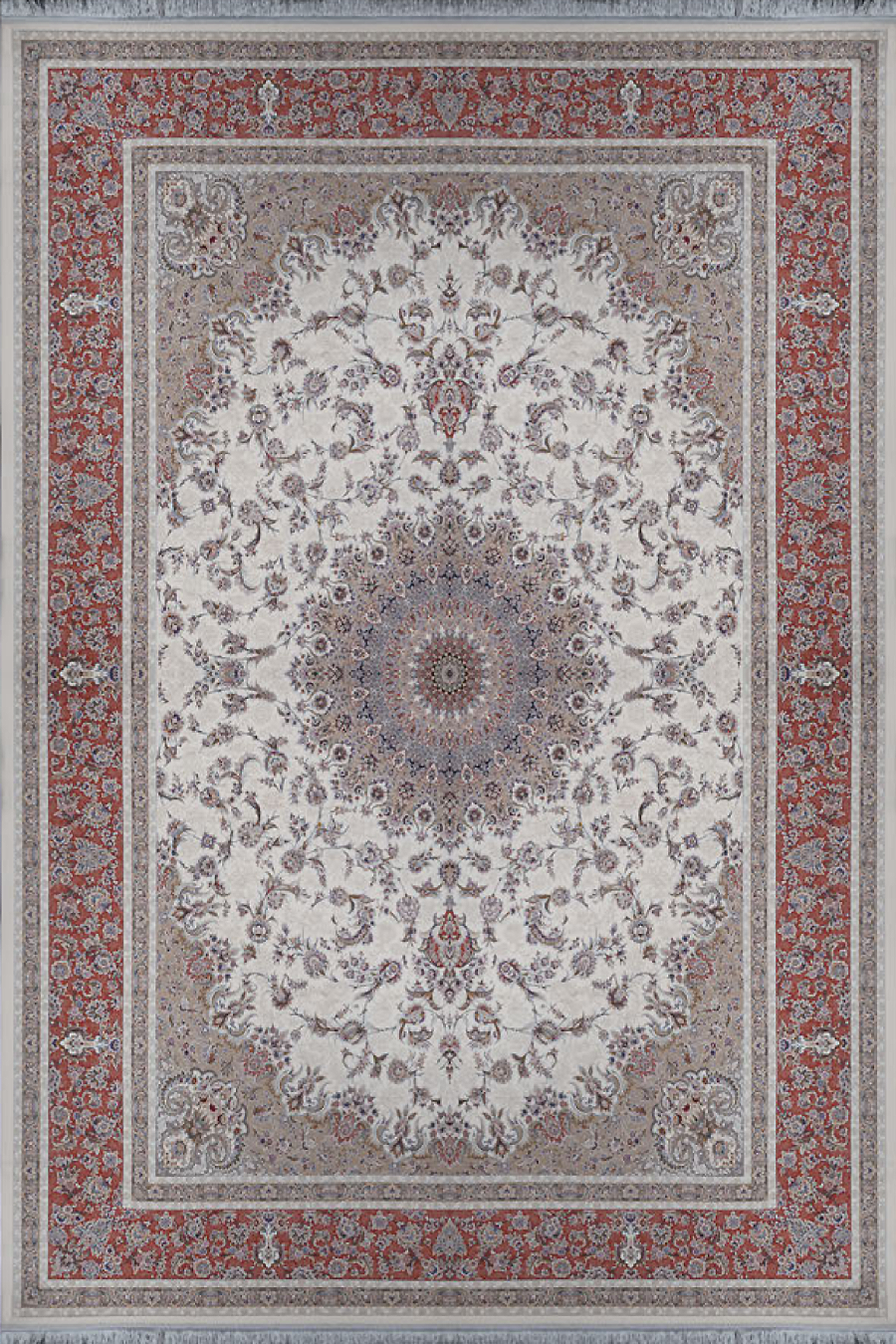 فرش آراد 1500 شانه کلکسیون سنتی طرح آدور زمینه کرم (برجسته)