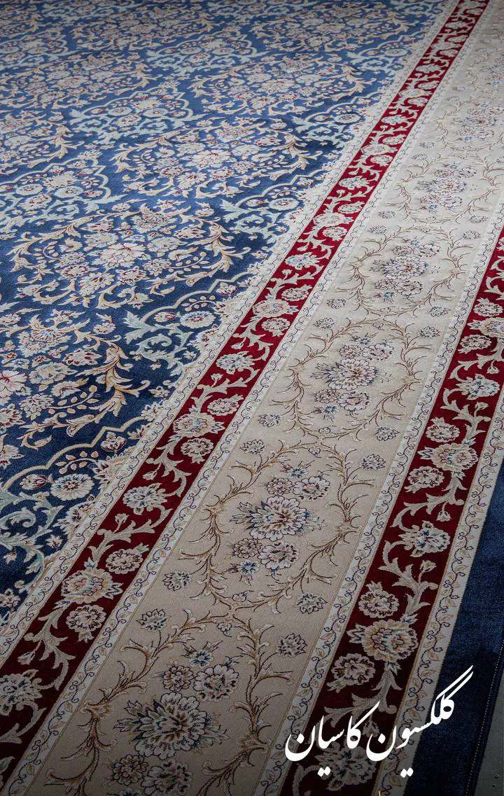 فرش آراد 1500 شانه کلکسیون کاسیان طرح کهربا زمینه آبی کاربنی (برجسته)