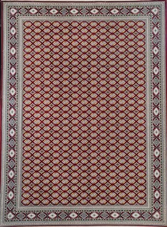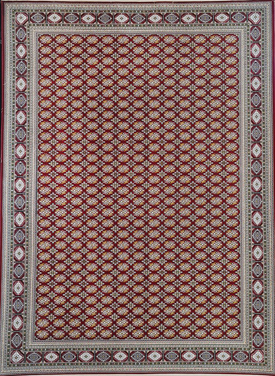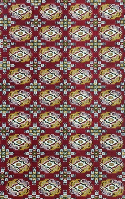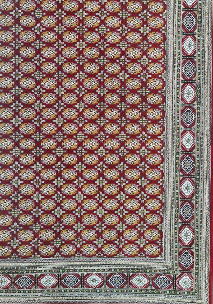 فرش آینده 1500 شانه طرح ترکمن زمینه لاکی (غیربرجسته)