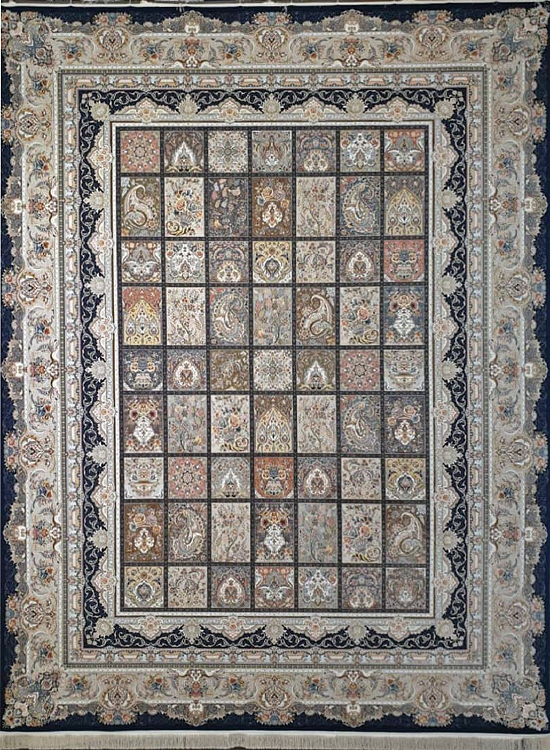 فرش آینده ۱۵۰۰ شانه طرح خشتی زمینه سورمهای، شاهکاری از تلفیق هنر اصیل ایرانی و تکنولوژی مدرن بافت است. طراحی خشتی با خانههای هندسی منظم و نقوش ظریف، تداعیگر باغی ایرانی در دل فرش است. رنگ سورمهای عمیق و جذاب این فرش، جلوهای خاص به دکوراسیون شما میبخشد و محیطی شیک و باوقار ایجاد میکند. با تراکم بالای ۱۵۰۰ شانه و بافت برجسته، این فرش علاوه بر زیبایی، نرمی و دوام فوقالعادهای دارد. استفاده از الیاف مرغوب و بافت متراکم باعث میشود این محصول درخشش و کیفیت خود را برای سالها حفظ کند. فرش خشتی سورمهای انتخابی لوکس و اصیل برای پذیرایی و فضاهای خاص منزل است.