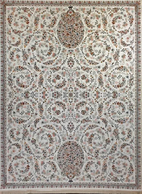 فرش آینده ۱۵۰۰ شانه طرح گلدانی زمینه کرم، شاهکاری از هنر فرشبافی ایرانی است که با تراکم بالا و بافت برجسته، کیفیت و زیبایی بینظیری را به خانه شما هدیه میدهد. رنگ کرم روشن این فرش، فضایی دلباز و آرام ایجاد میکند و باعث میشود طرح گلدانی با جلوهای فاخر و چشمنواز در مرکز توجه قرار گیرد. این رنگ خنثی و کلاسیک، قابلیت هماهنگی با طیف گستردهای از مبلمان و پردهها را دارد و محیطی لوکس و اصیل به ارمغان میآورد. الیاف باکیفیت و بافت متراکم، علاوه بر زیبایی، دوام و ماندگاری بالا را تضمین میکند. انتخابی ایدهآل برای سالن پذیرایی و فضاهایی که به دنبال ترکیب اصالت و روشنایی هستند.