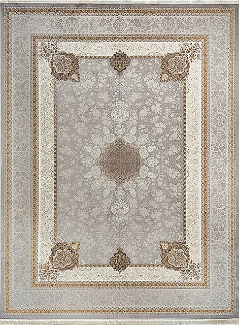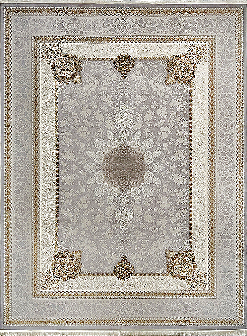 فرش باستان یزد 1200 شانه کد 01-10 زمینه نقره ای (برجسته)