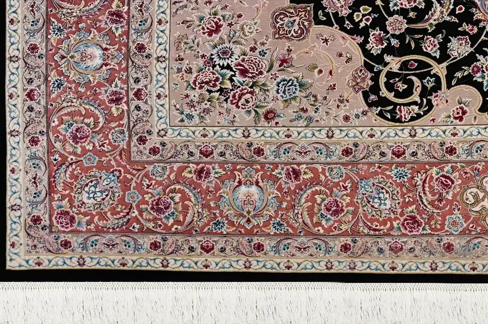 فرش بهشتی تبریز 1500 شانه کلکسیون شاهان کد 1526 زمینه مشکی (برجسته)