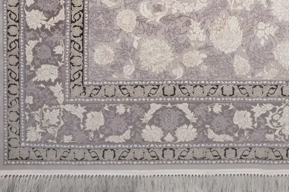 فرش بهشتی تبریز 700 شانه کلکسیون پارمیس کد 3303 زمینه نقره ای (برجسته)
