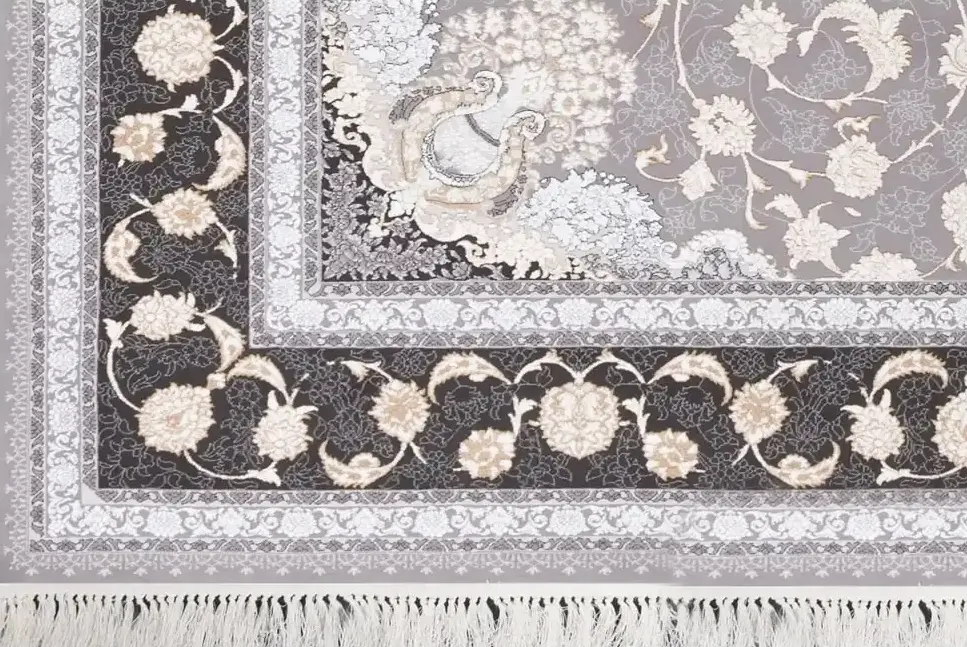 فرش بهشتی تبریز 700 شانه کلکسیون پارمیس کد 3307 زمینه نقره ای (برجسته)