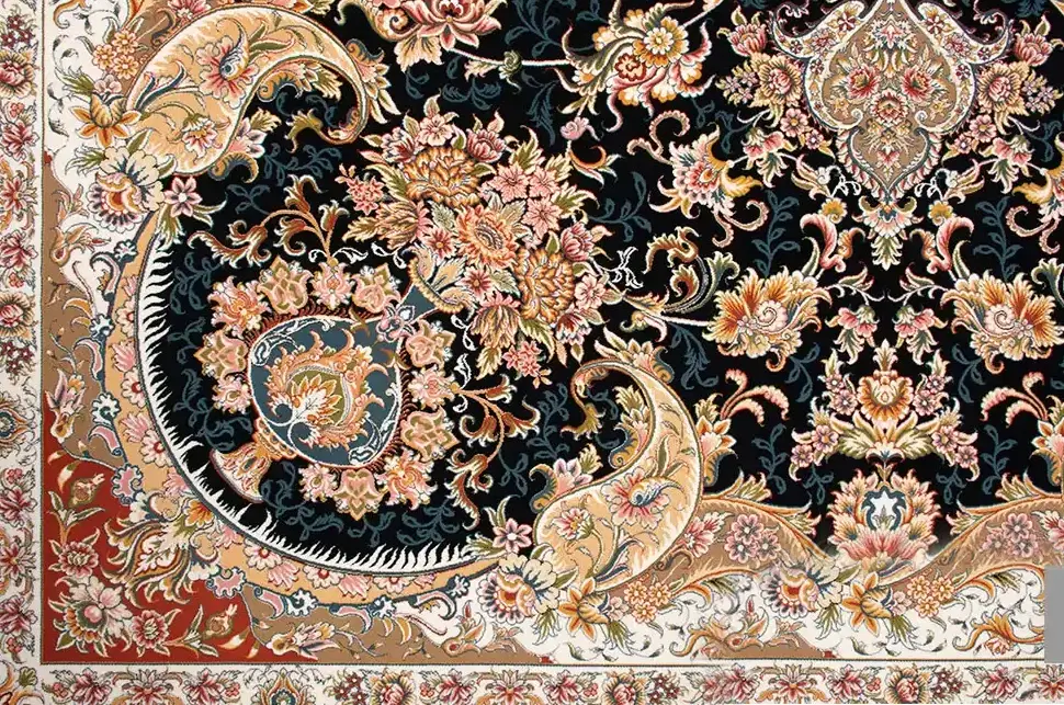 فرش بهشتی 1200 شانه کلکسیون تبریز کد 1091 زمینه مشکی (برجسته)