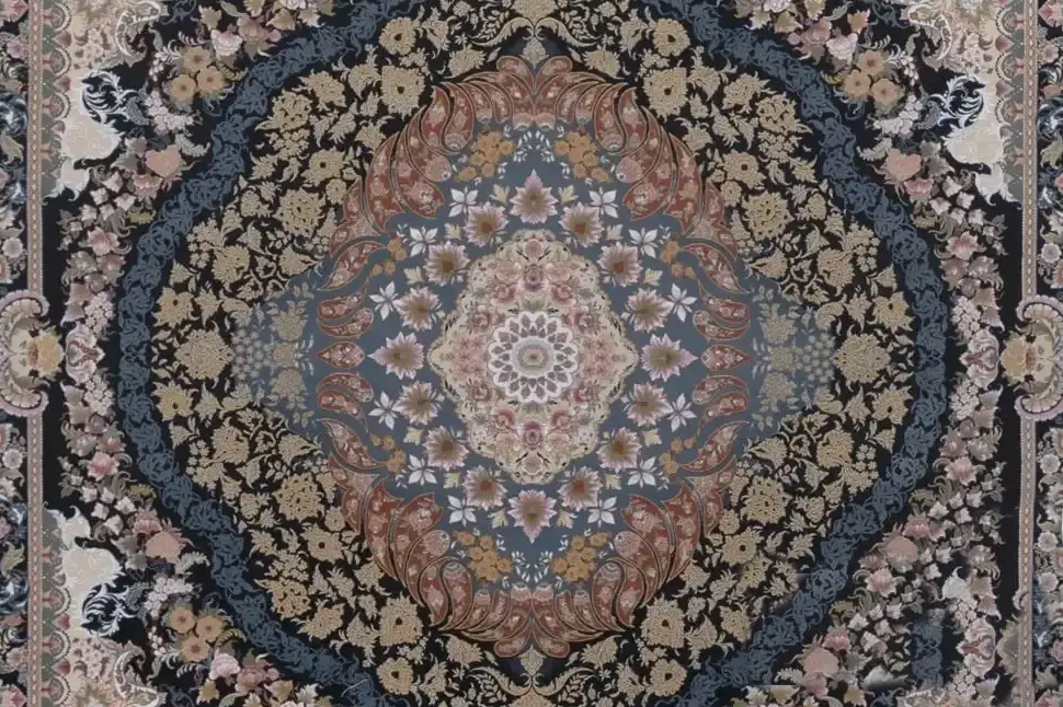 فرش بهشتی 1200 شانه کلکسیون تبریز کد 1181 زمینه مشکی (برجسته)