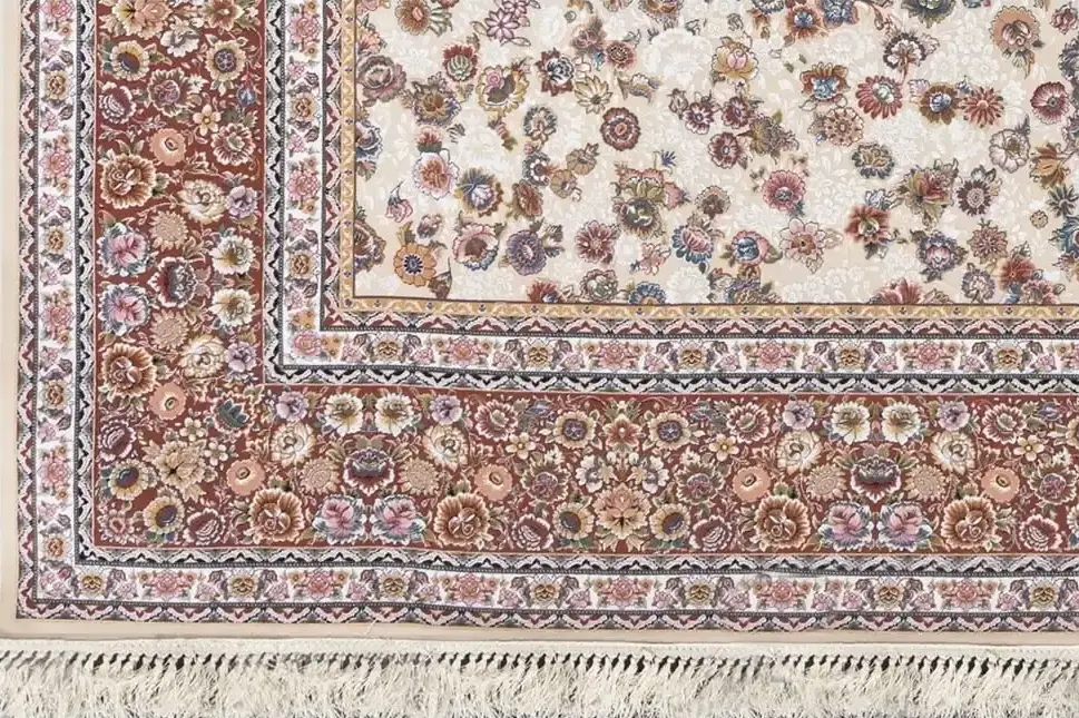 فرش بهشتی 1200 شانه کلکسیون تبریز کد 1304 زمینه کرم (برجسته)