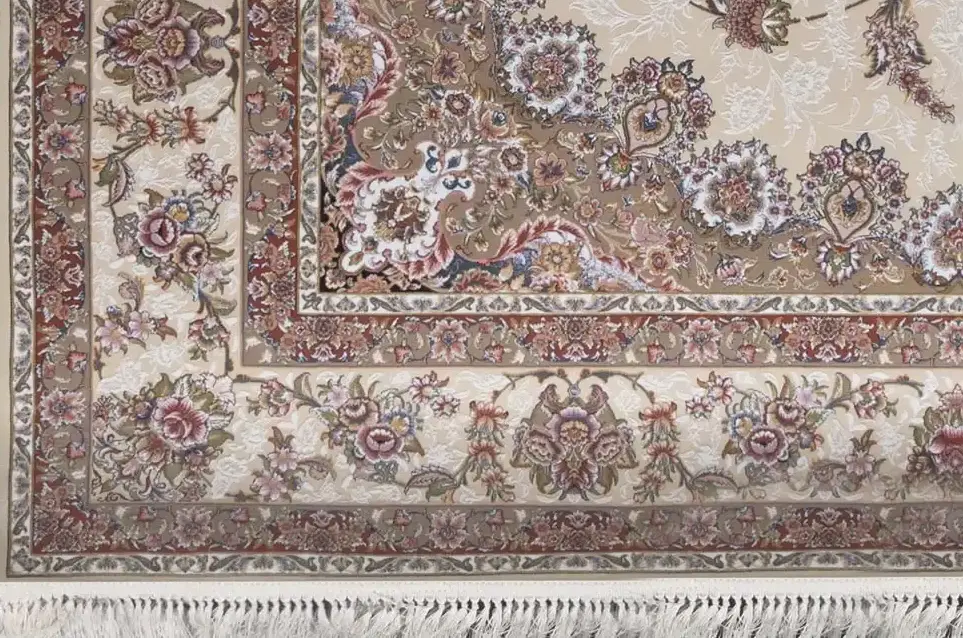 فرش بهشتی 1200 شانه کلکسیون تبریز کد 1340 زمینه کرم (برجسته)