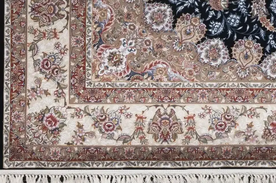 فرش بهشتی 1200 شانه کلکسیون تبریز کد 1341 زمینه مشکی (برجسته)
