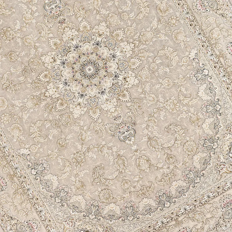 فرش کاشان داریوش ۱۲۰۰ شانه کلکسیون هیلتون؛ اوج شکوه ایرانی با طرح ترنج دار و گل برجسته (گل وسط)