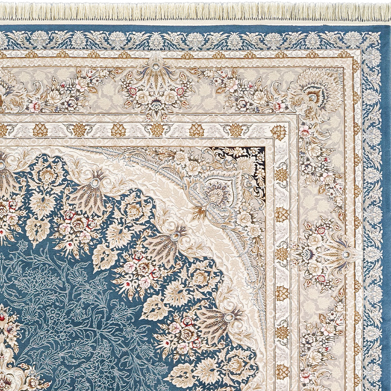 فرش داریوش 1200 شانه کلکسیون هیلتون کد 1202 زمینه آبی (برجسته)