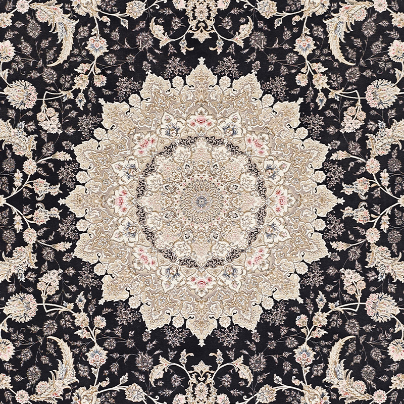 طرح گل برجسته این فرش باعث شده هنگام تابش نور، بافتها درخشانتر دیده شوند و حس عمق و حجم واقعی ایجاد کنند.