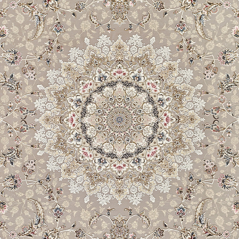 در نگاه نخست، فرش داریوش کاشان گل ابریشم، نمایی چشمنواز از هنر سنتی و طراحی مدرن را در ذهن تداعی میکند. نقوش ظریف گلها، برگها و لچک و ترنج کلاسیک ایرانی با ترکیبی از رنگهای آرامشبخش مانند کرم، نقرهای، فیلی، طوسی روشن، نسکافهای و سرمهای، هارمونی دلنشینی ایجاد میکنند.