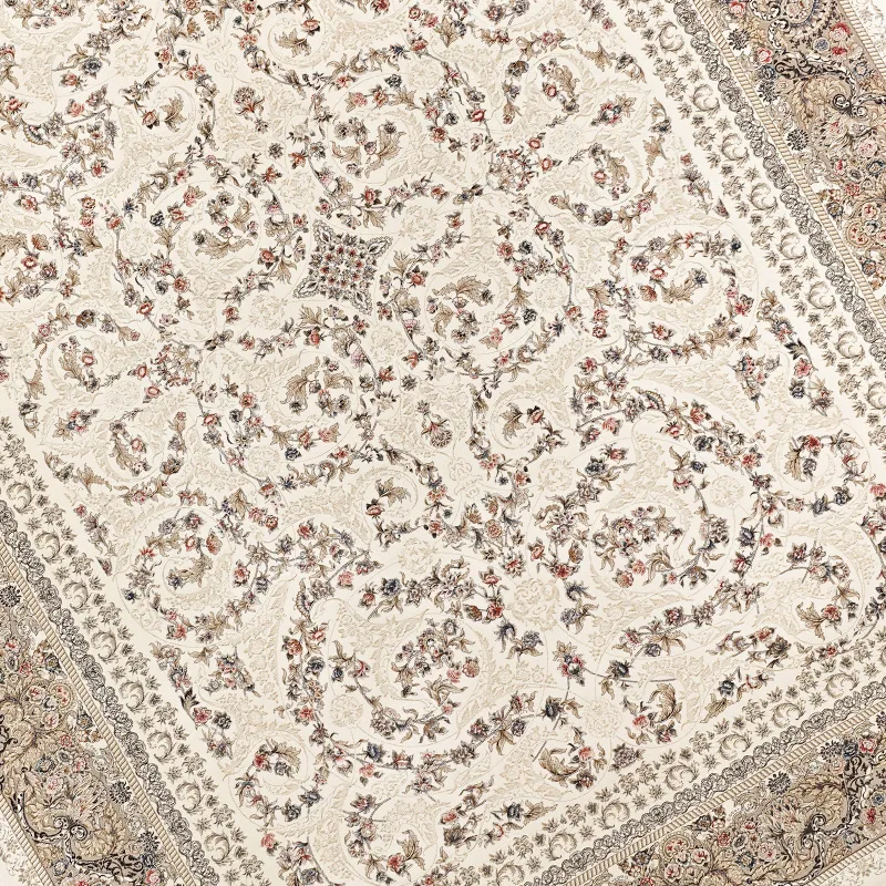 فرش کاشان داریوش ۱۲۰۰ شانه کلکسیون هیلتون؛ طرح افشان برجسته بدون گل وسط (دکوراسیون مدرن و متناسب با تمام فضاها)
