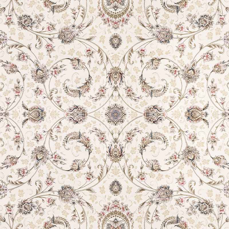 در نگاه نخست، فرش داریوش کاشان گل ابریشم، نمایی چشمنواز از هنر سنتی و طراحی مدرن را در ذهن تداعی میکند. نقوش ظریف گلها، برگها و لچک و ترنج کلاسیک ایرانی با ترکیبی از رنگهای آرامشبخش مانند کرم، نقرهای، فیلی، طوسی روشن، نسکافهای و سرمهای، هارمونی دلنشینی ایجاد میکنند.