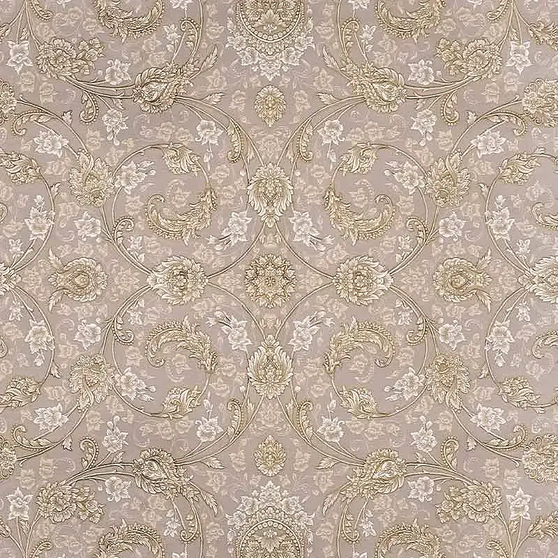 ۲. نخ ویسکوز (Viscose Silk): برای ایجاد درخشندگی و جلوه ابریشمی در بخشهای گل برجسته، از نخ ویسکوز مرغوب استفاده شده است. این نخ ظاهری شبیه به ابریشم طبیعی دارد و باعث انعکاس زیباتر نور و ایجاد جلوهای لوکستر میشود.