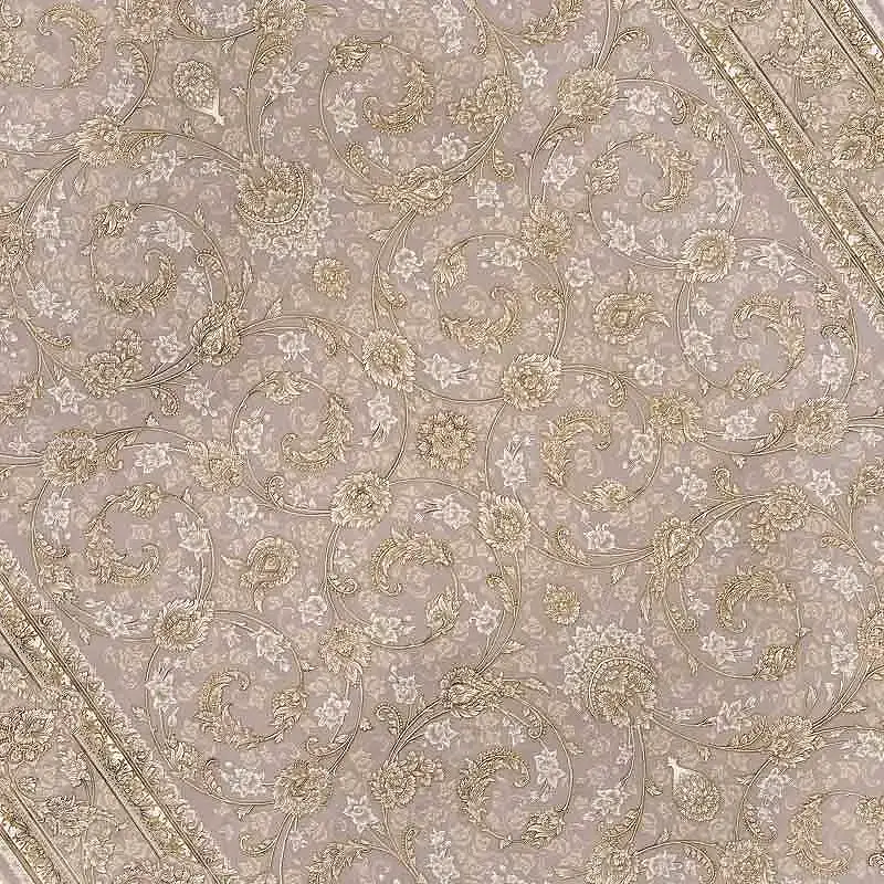 طرح گل برجسته این فرش باعث شده هنگام تابش نور، بافتها درخشانتر دیده شوند و حس عمق و حجم واقعی ایجاد کنند.