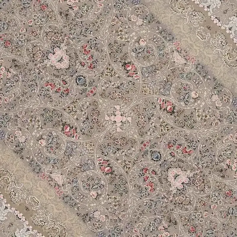 طرح گل برجسته این فرش باعث شده هنگام تابش نور، بافتها درخشانتر دیده شوند و حس عمق و حجم واقعی ایجاد کنند.