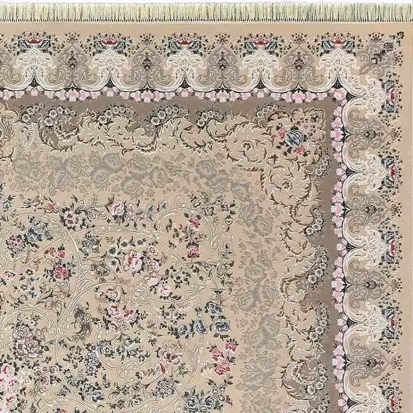 طرح گل برجسته این فرش باعث شده هنگام تابش نور، بافتها درخشانتر دیده شوند و حس عمق و حجم واقعی ایجاد کنند.