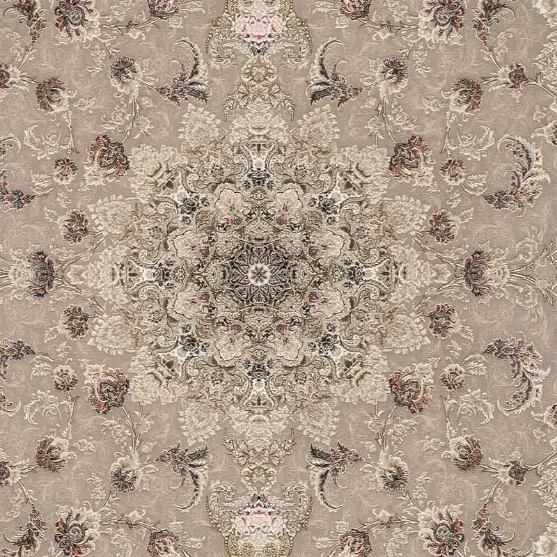 طرح گل برجسته این فرش باعث شده هنگام تابش نور، بافتها درخشانتر دیده شوند و حس عمق و حجم واقعی ایجاد کنند.