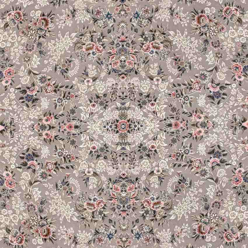 در نگاه نخست، فرش داریوش کاشان گل ابریشم، نمایی چشمنواز از هنر سنتی و طراحی مدرن را در ذهن تداعی میکند. نقوش ظریف گلها، برگها و لچک و ترنج کلاسیک ایرانی با ترکیبی از رنگهای آرامشبخش مانند کرم، نقرهای، فیلی، طوسی روشن، نسکافهای و سرمهای، هارمونی دلنشینی ایجاد میکنند.