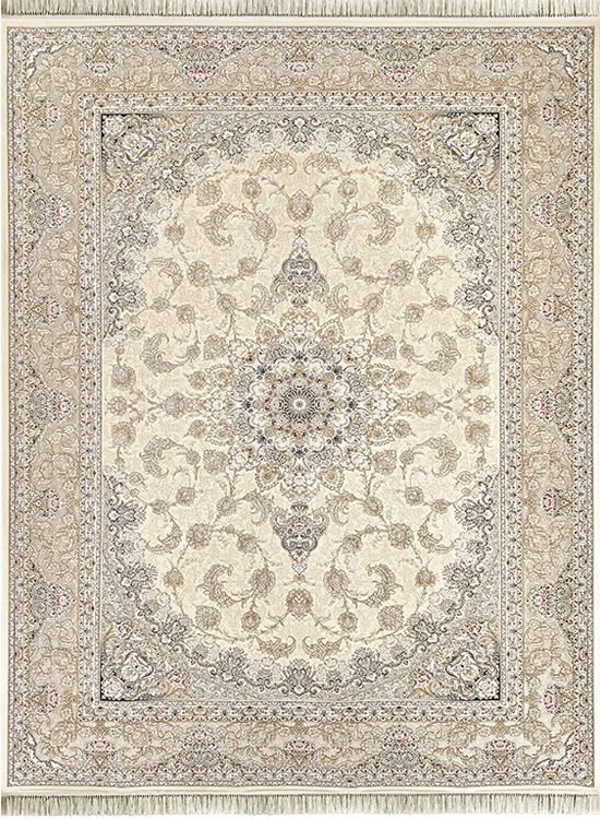 فرش داریوش 1200 شانه کلکسیون گل ابریشم کد 1201 زمینه کرم گلد (برجسته)